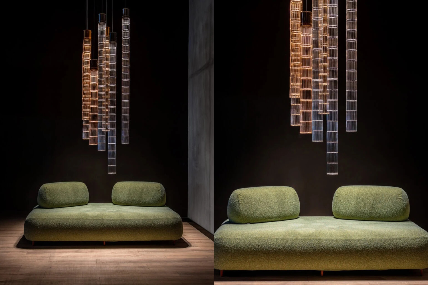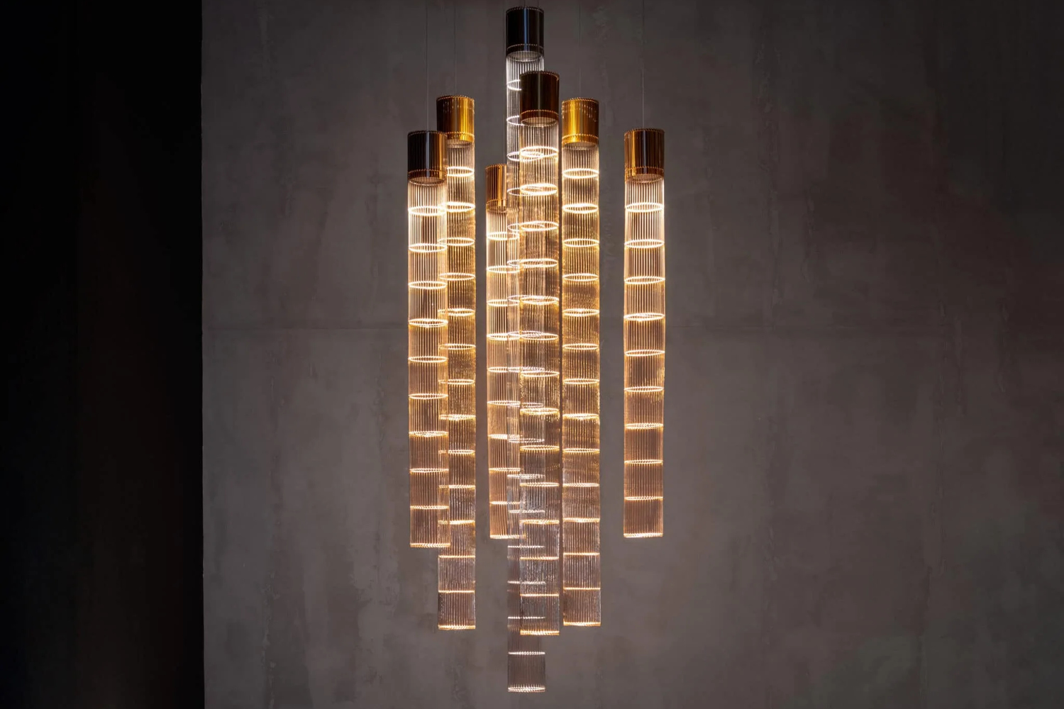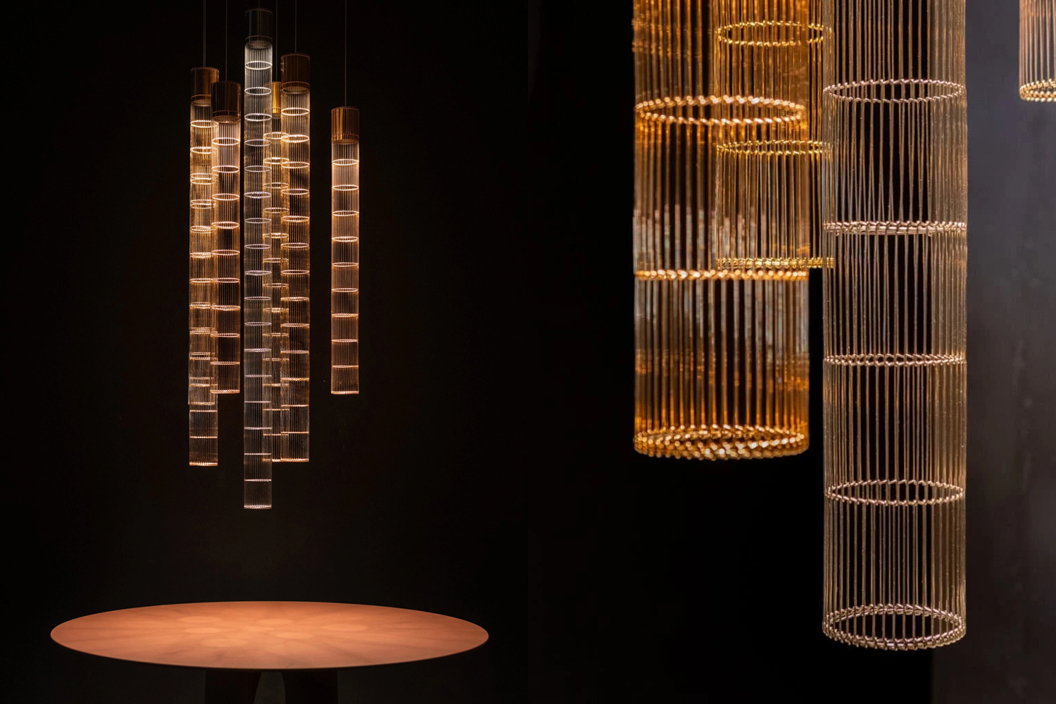 An avant-garde form of lighting inspired by the cosmic harmony of stars. Its slender silhouette and subtle light evoke the trails of falling comets. A metal mesh and aluminum shade create a modern composition. Celestia works as a striking solo accent, while combining multiple units allows for the creation of luminous constellations inspired by the motion of celestial bodies. The fusion of light and form enhances spatial depth, adding a touch of dynamism to the interior.