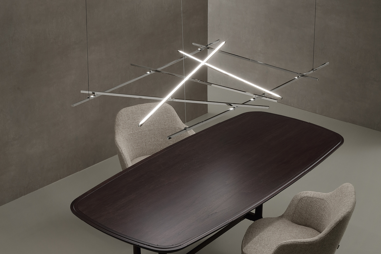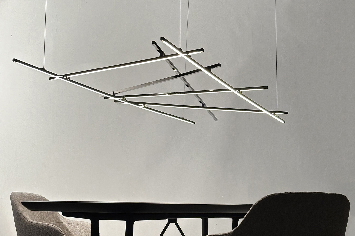 The CREA project comes to life through the exploration of the conductive properties of metal profiles. Electricity can travel without wires, thanks to ultra-low-voltage LEDs embedded within thin brass rods. This gives rise to a modular lighting system, where each element, a rod, is activated by simply touching another, through overlapping, radiating light in the desired direction. It offers endless combinations and interweavings, merging aesthetics and functionality in a continuous dialogue between technology and creativity. The true protagonist of CREA is light: a pure and essential light, which becomes not only a functional element but also an artistic and poetic expression. Each lamp becomes a dynamic work, which transforms spaces and environments, inviting the user to become the author of their own light free to compose and create infinite spatial configurations.